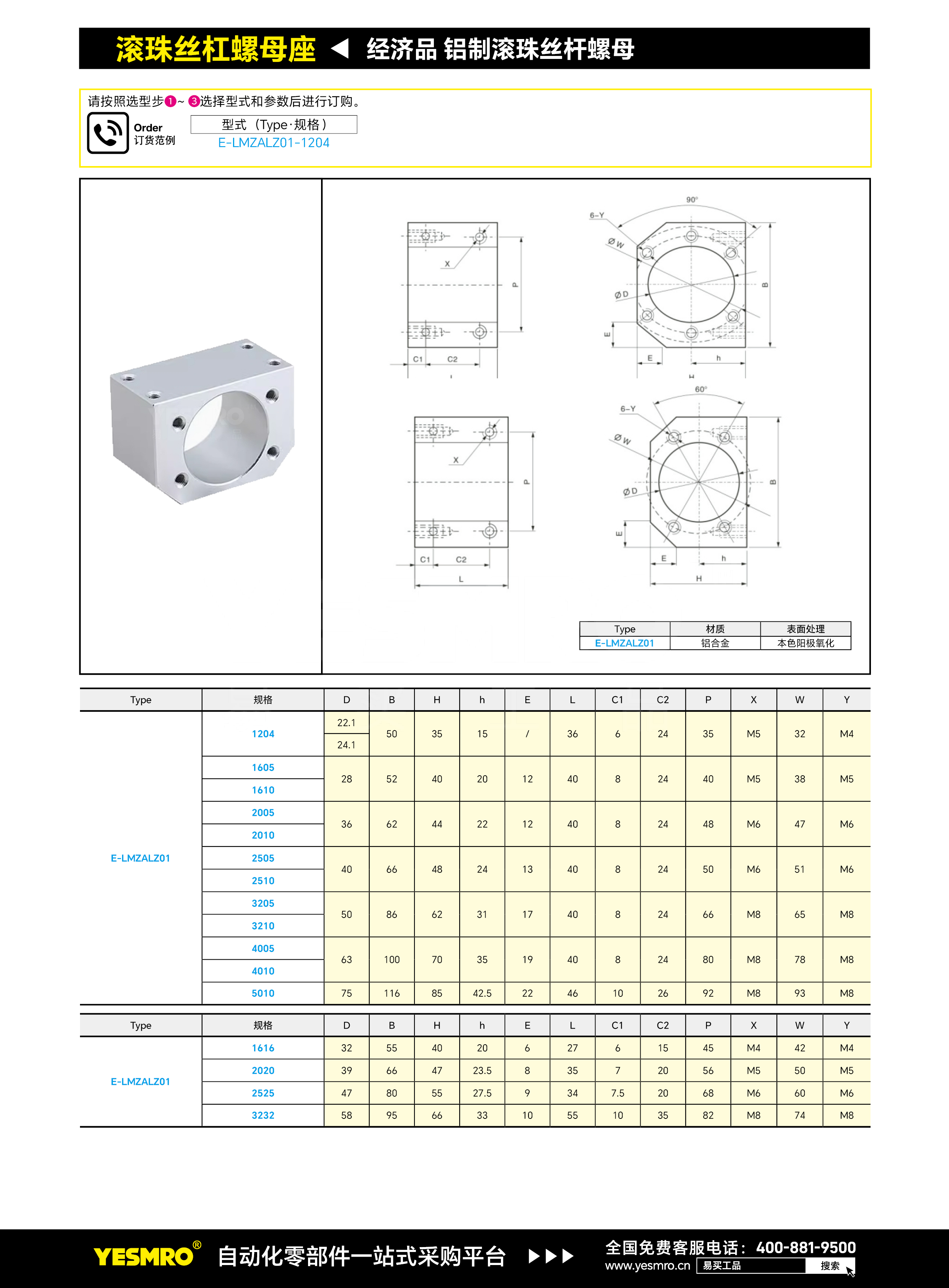 铝制滚珠丝杆螺母