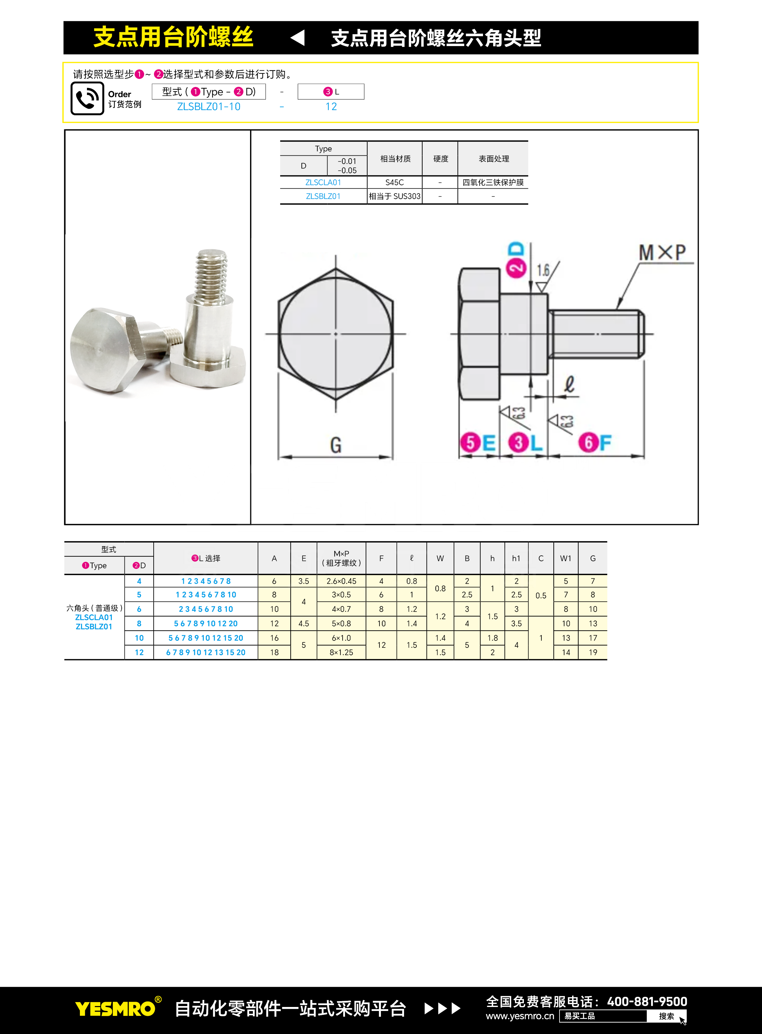 支点用台阶螺丝 六角头型