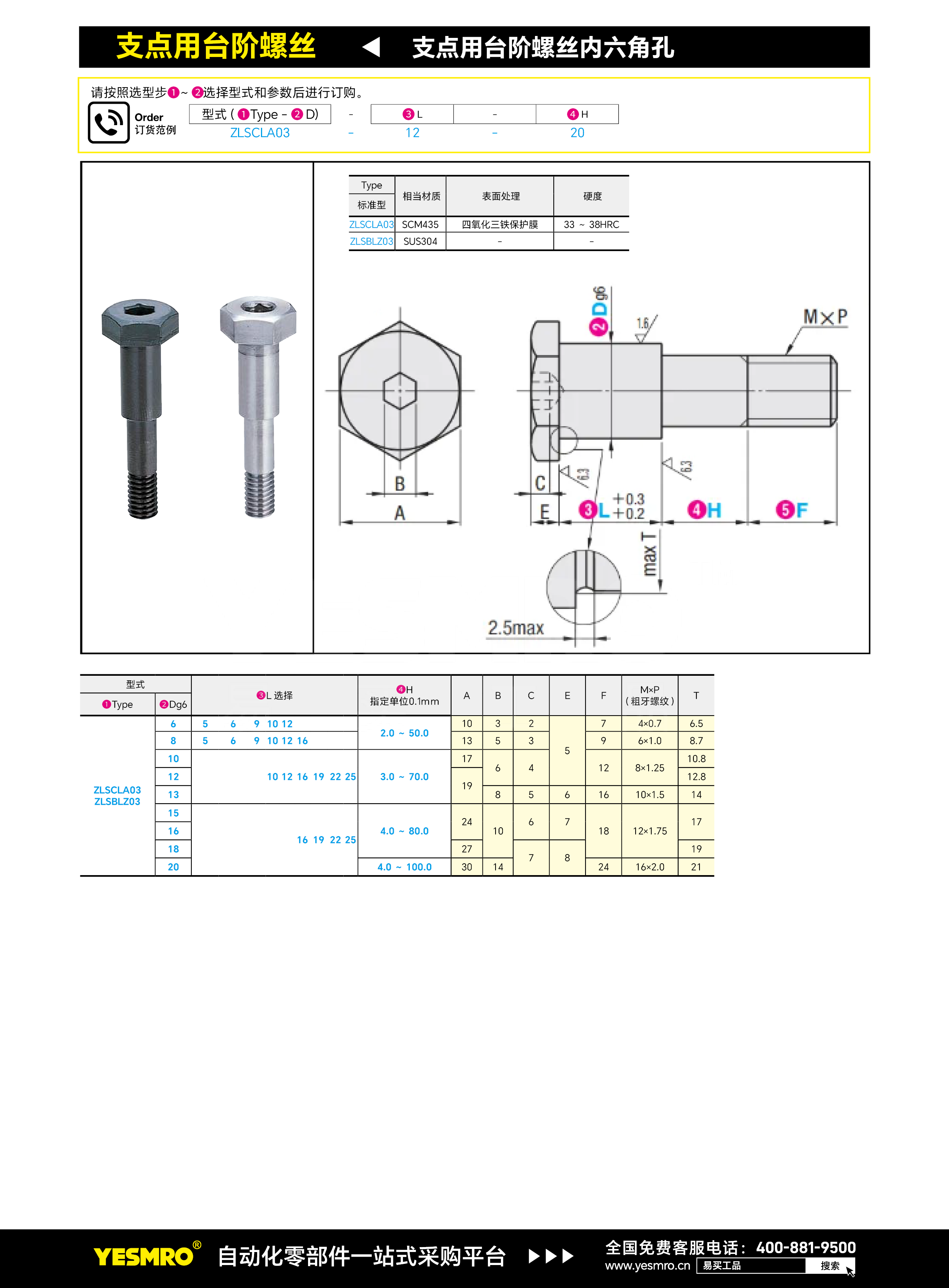 支点销 短头台阶螺帽固定型