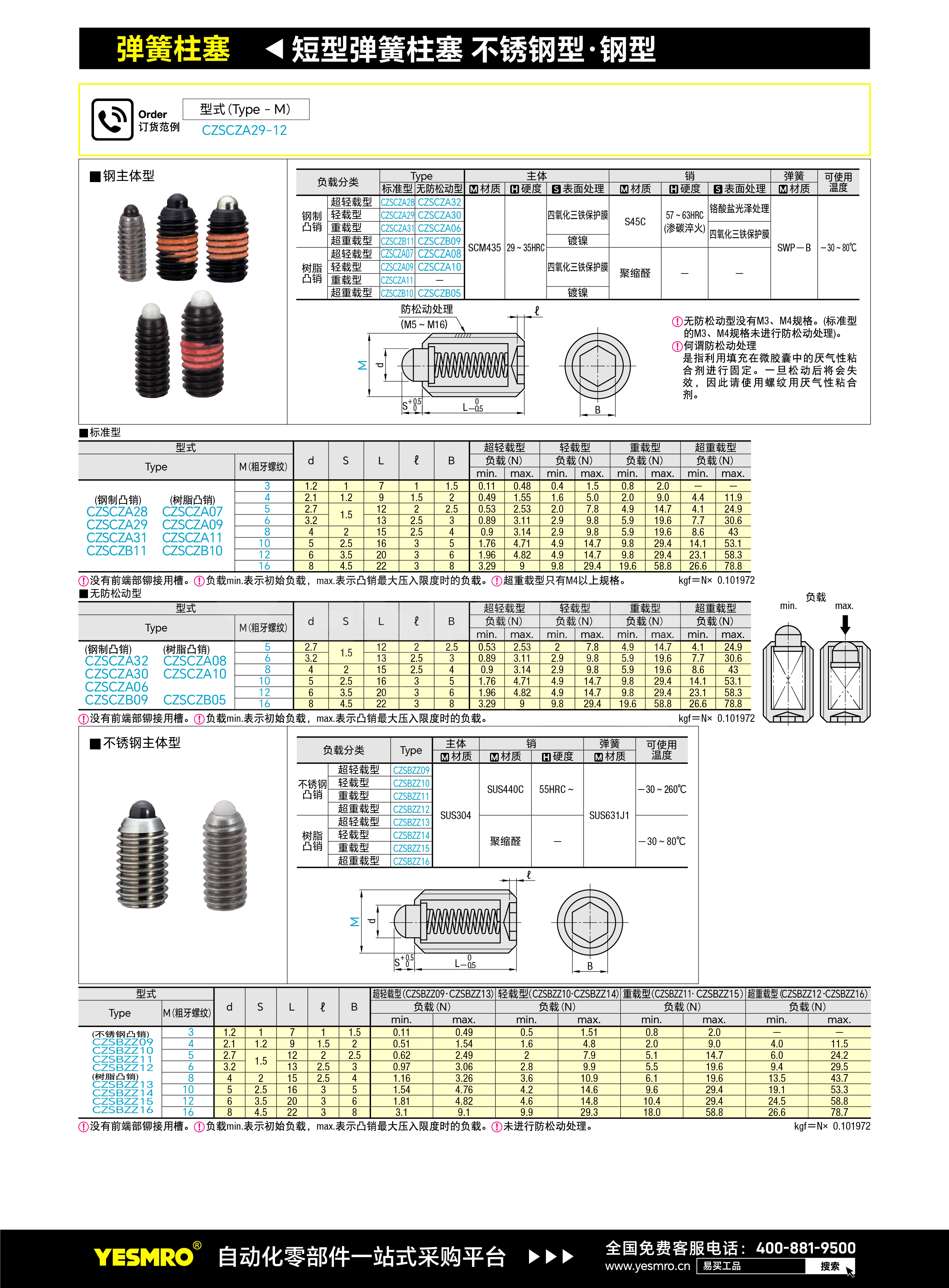 短型弹簧柱塞 钢型