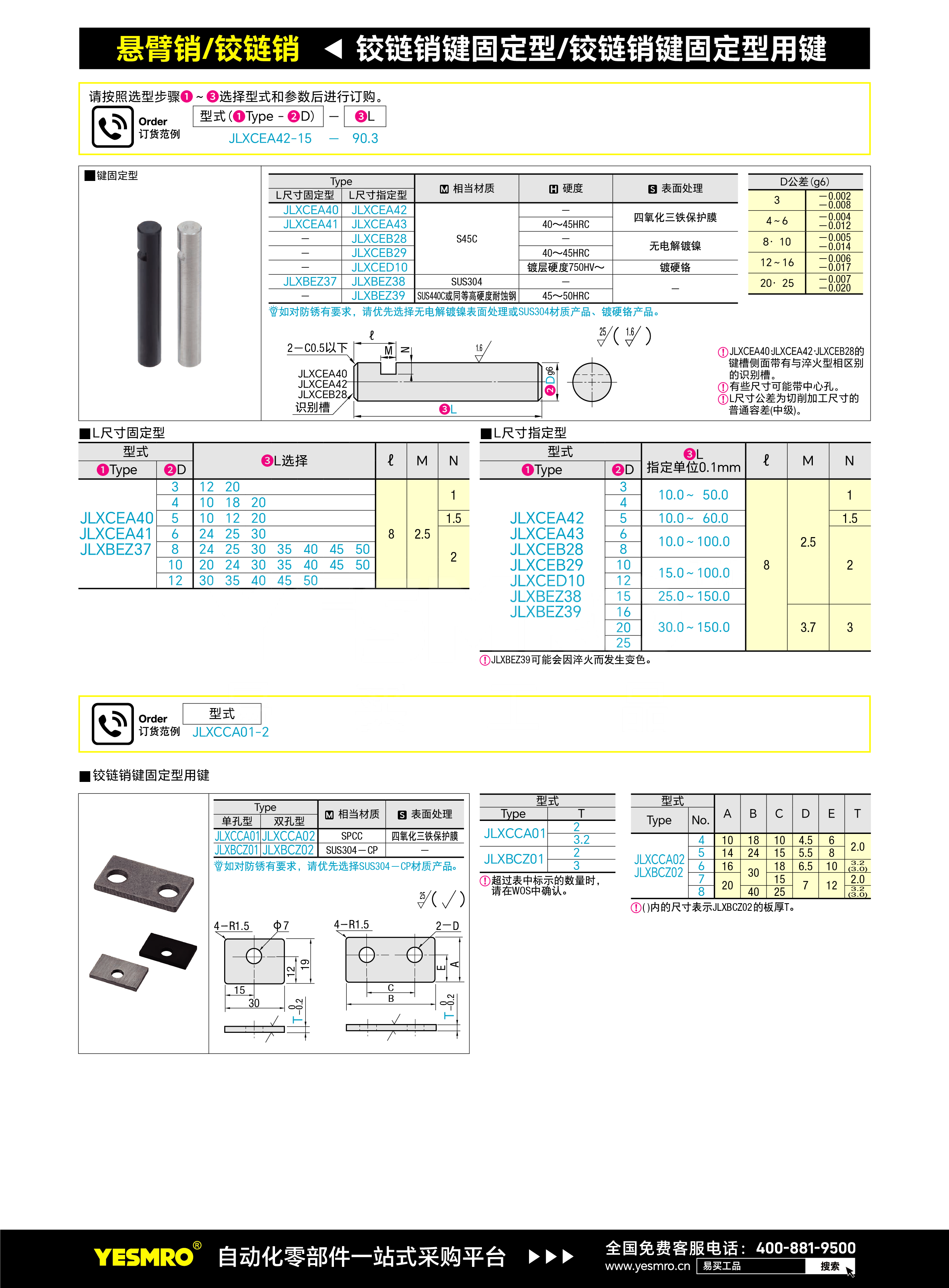 铰链销 键固定型用键