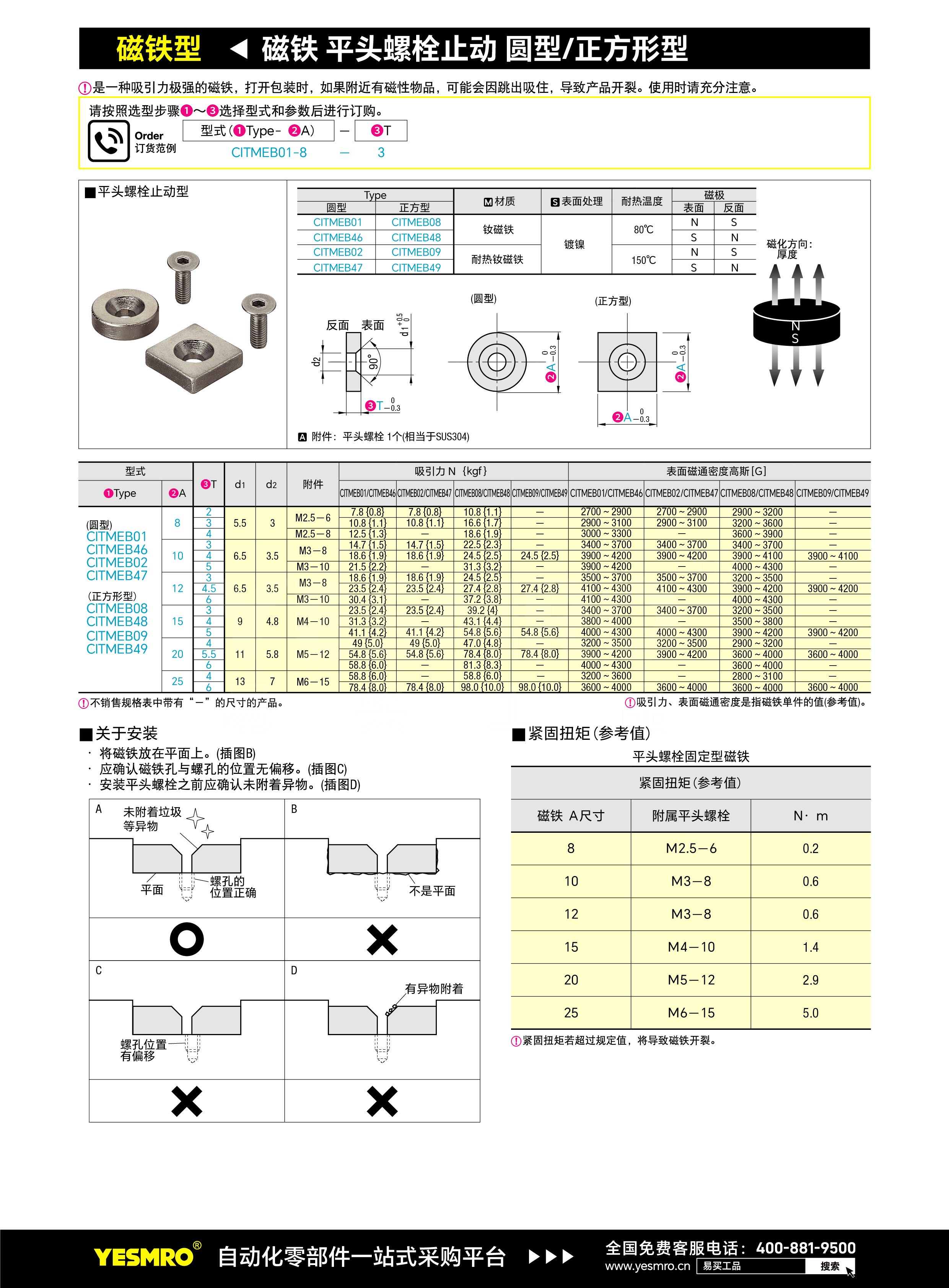 磁铁 平头螺栓止动 圆型