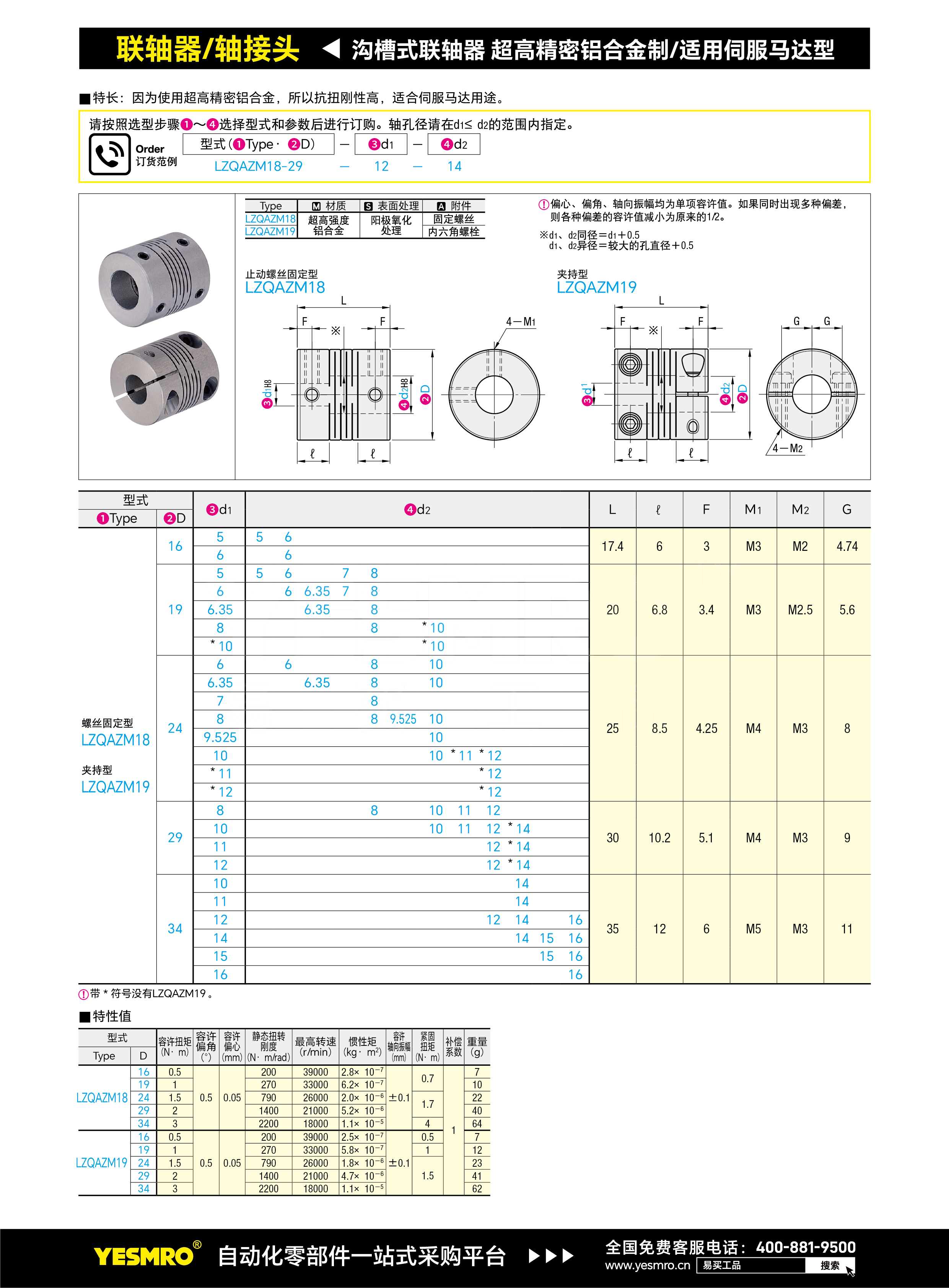 沟槽式联轴器 超高精密铝合金制/适用伺服马达型