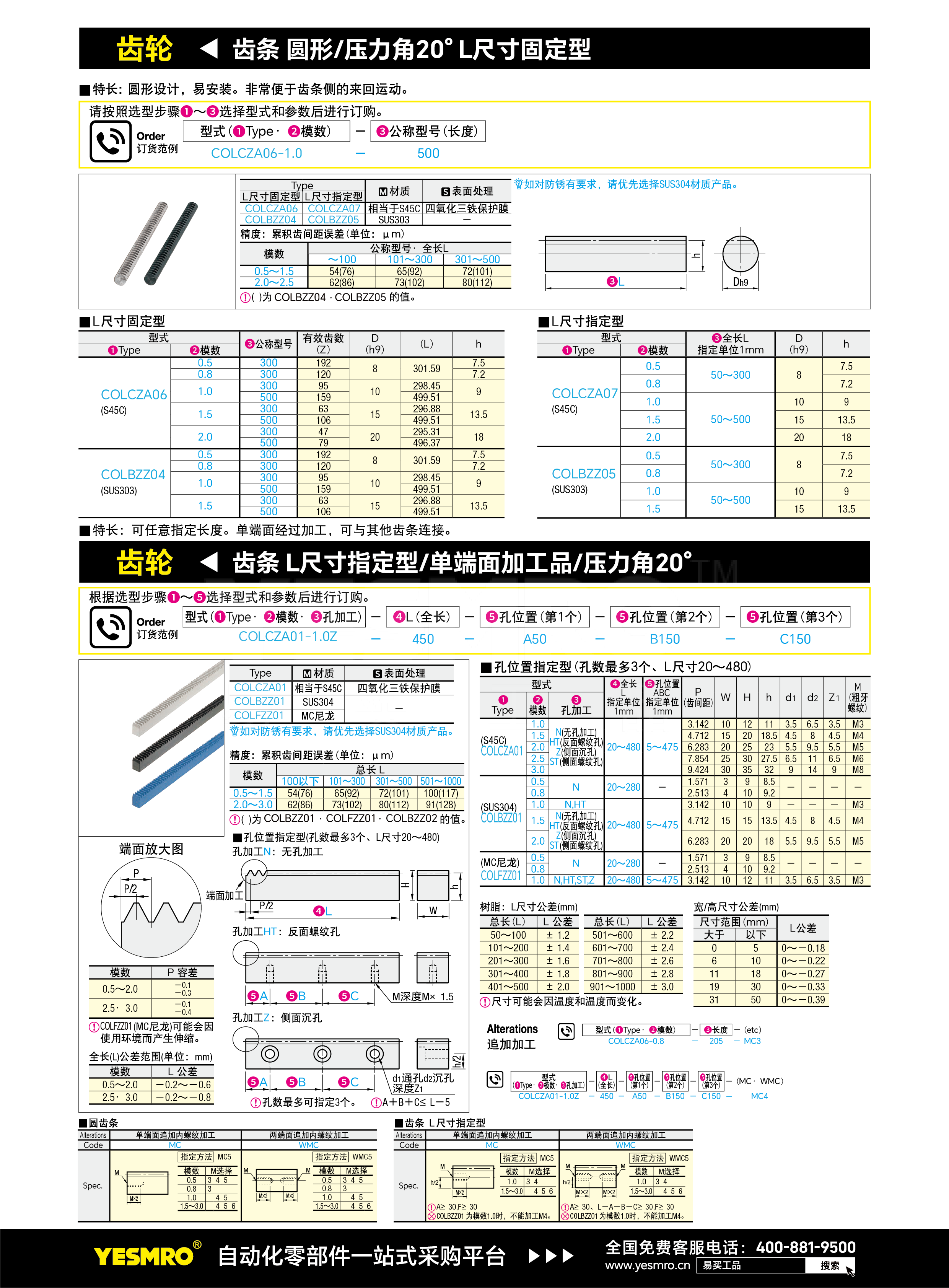 齿条 圆形/压力角20° L尺寸固定型