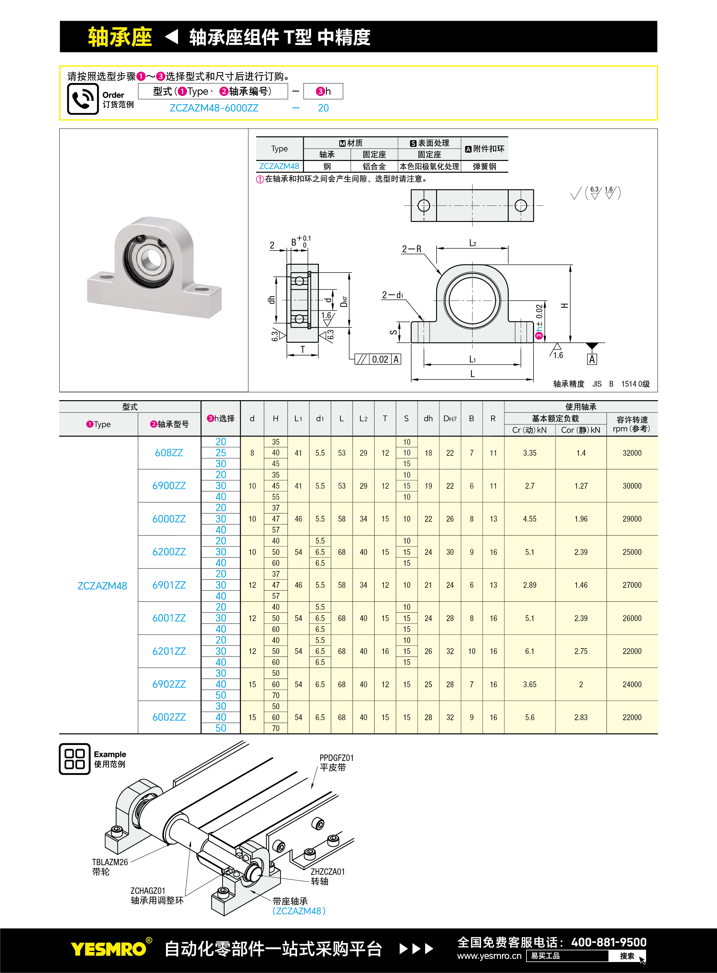 轴承座组件T型 中精度