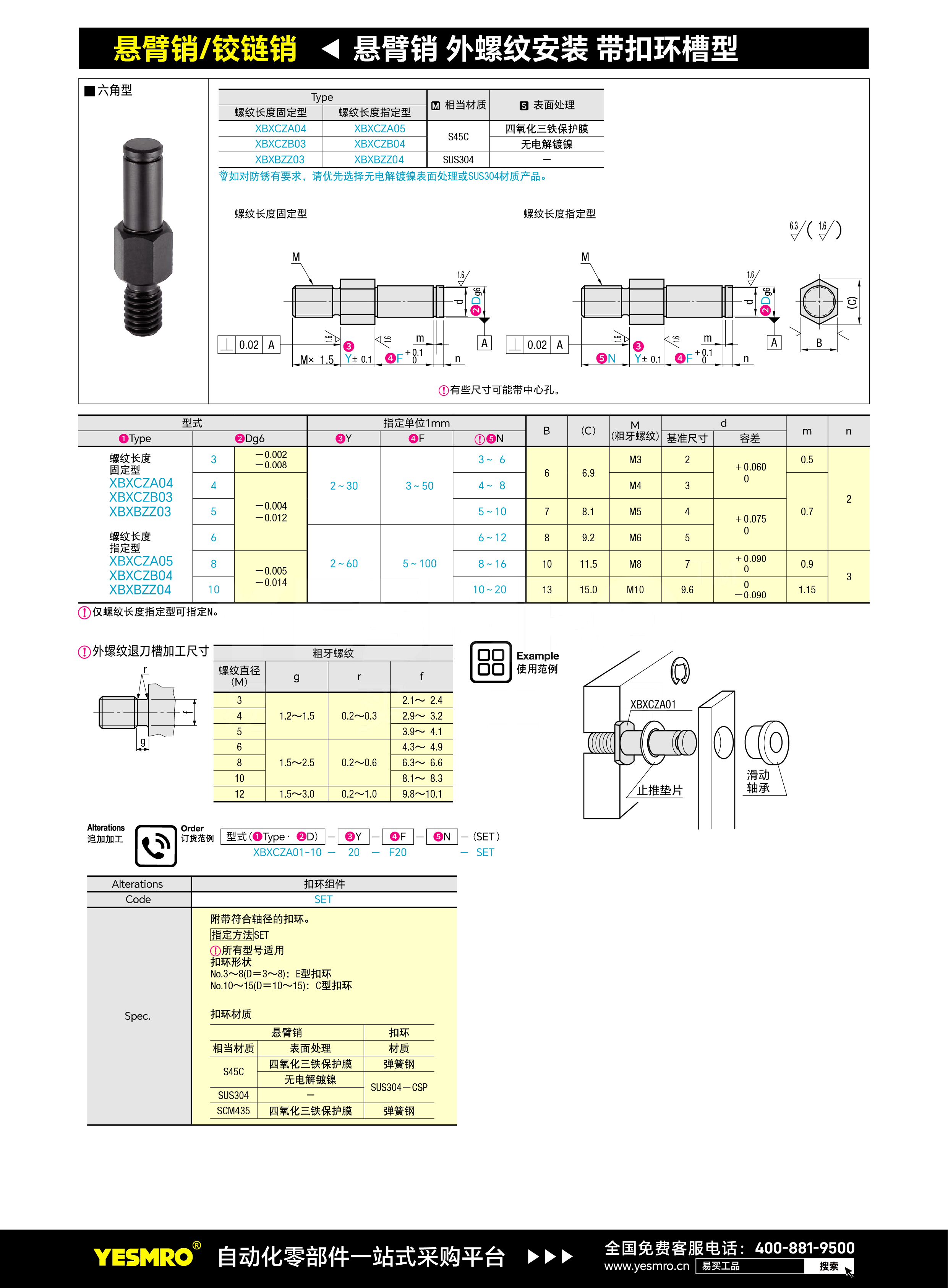 悬臂销 六角型/标准扣环型