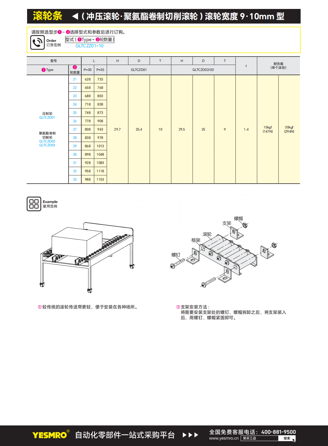 滚轮条(冲压滚轮·聚氨酯卷制切削滚轮)滚轮宽度9·10mm型