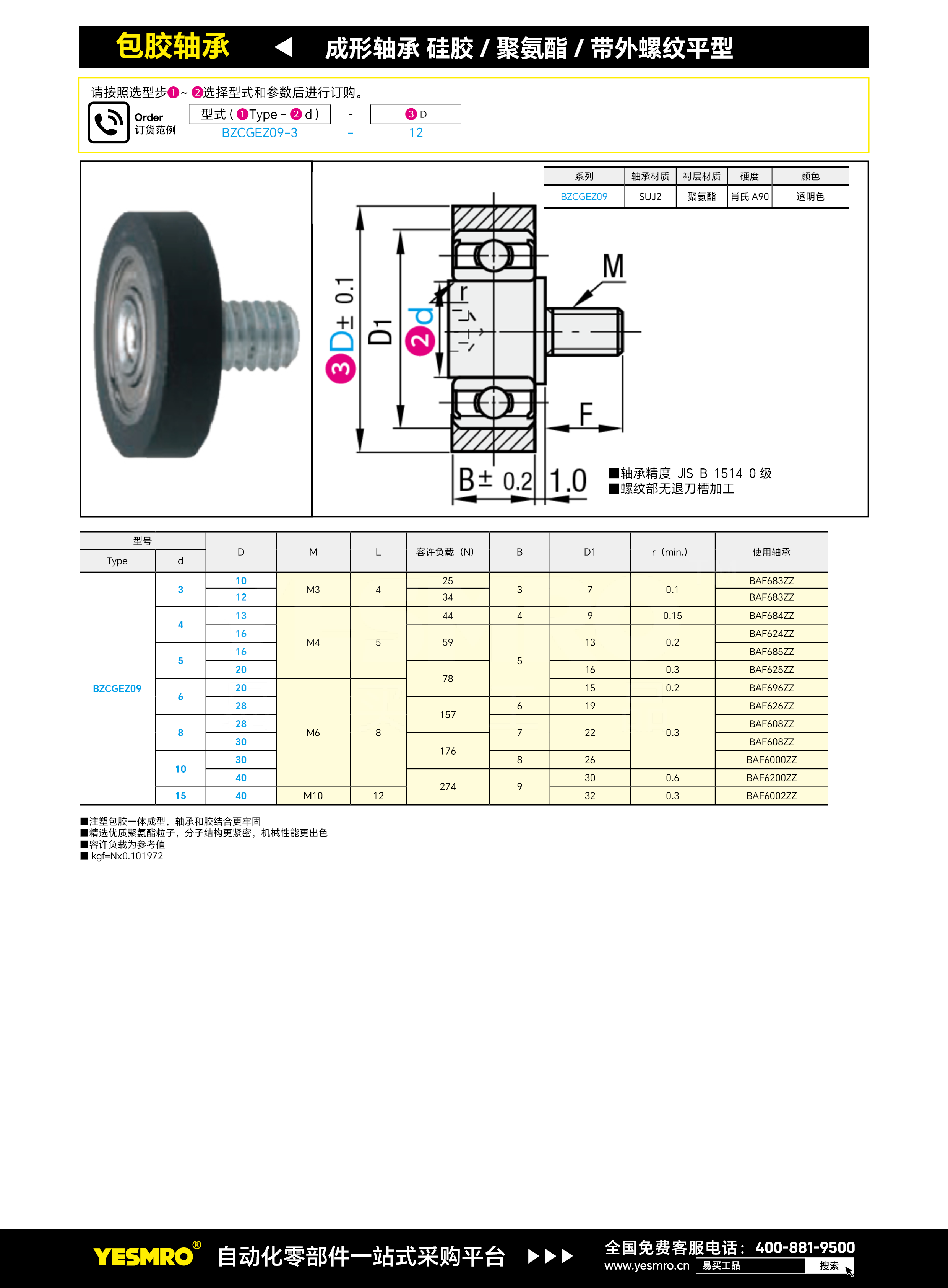 成形轴承 硅胶/聚氨酯/带外螺纹平型