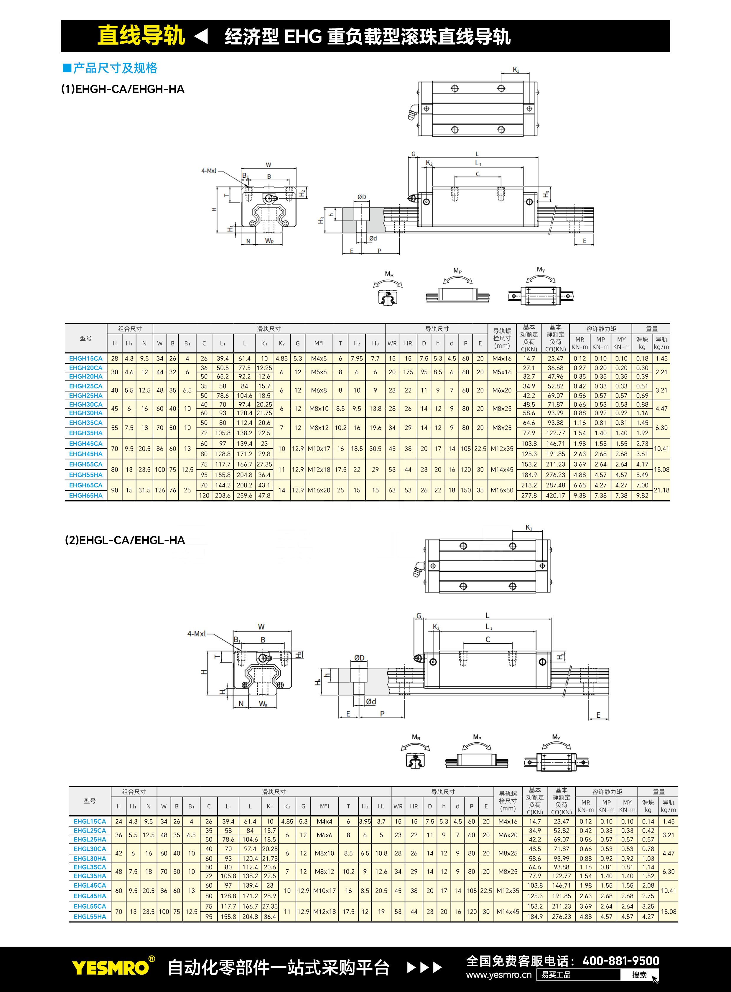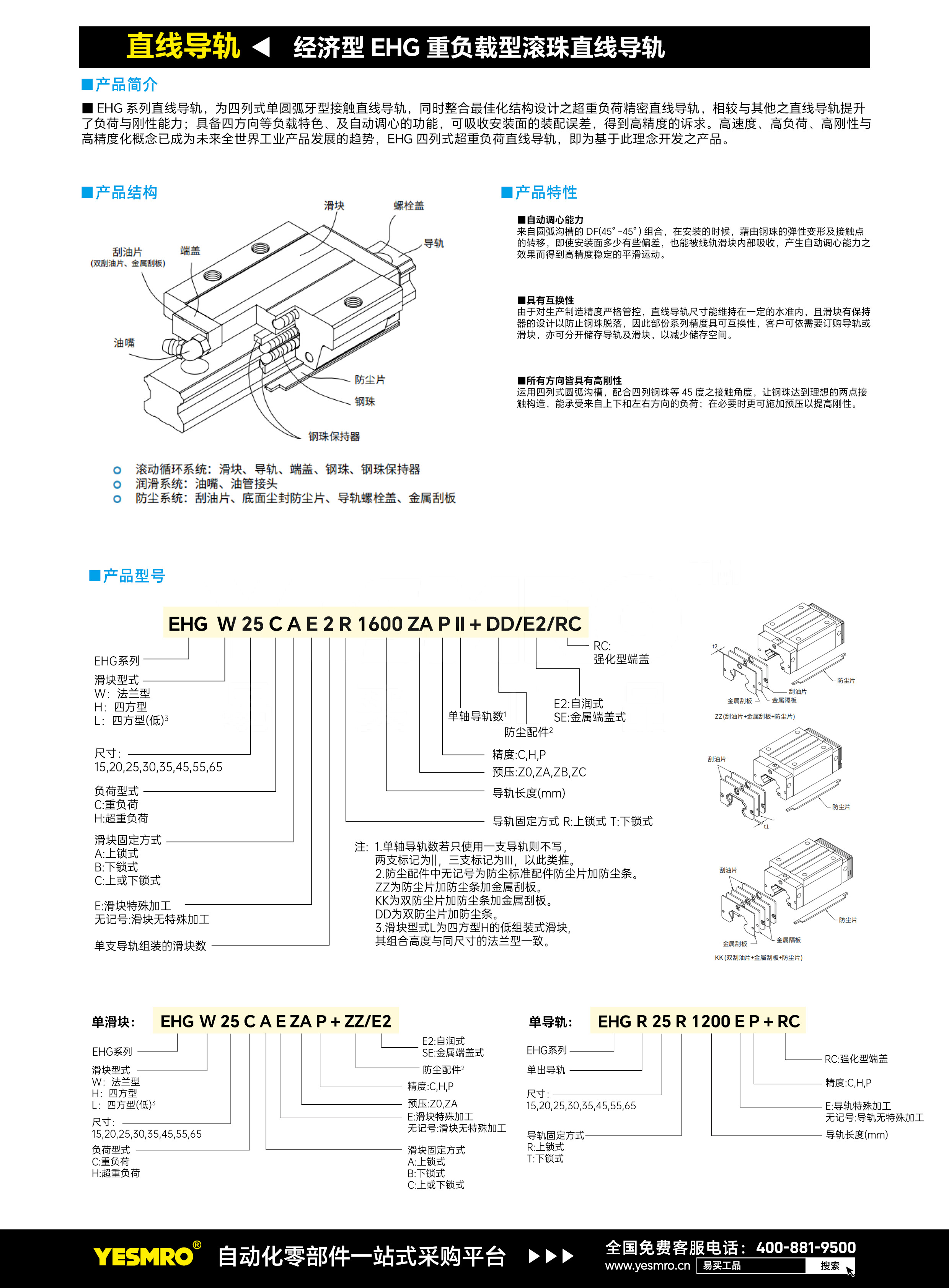 首页直线导轨EHG重负载型滚珠直线导轨-单滑块
