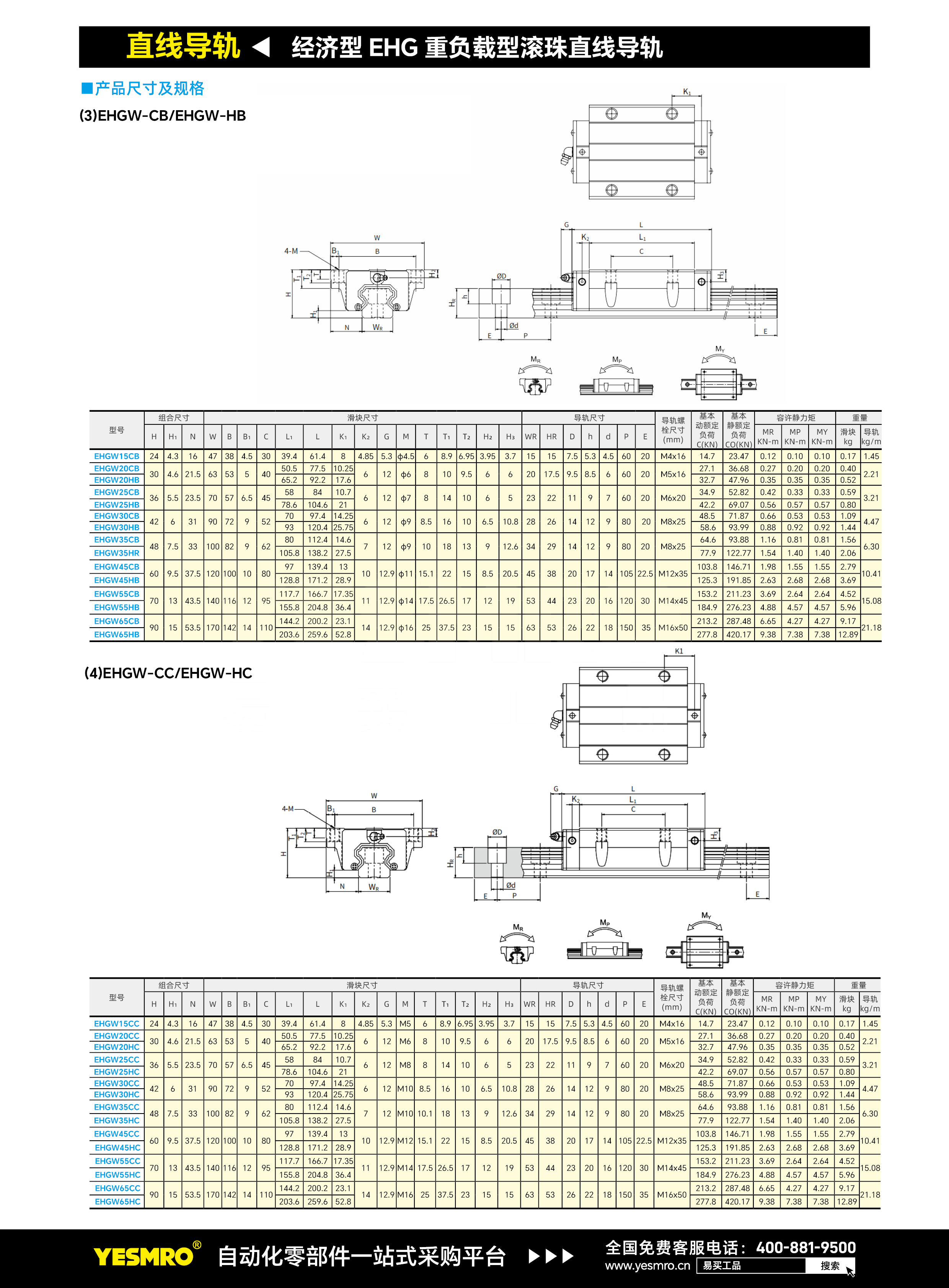 首页直线导轨EHG重负载型滚珠直线导轨-组件