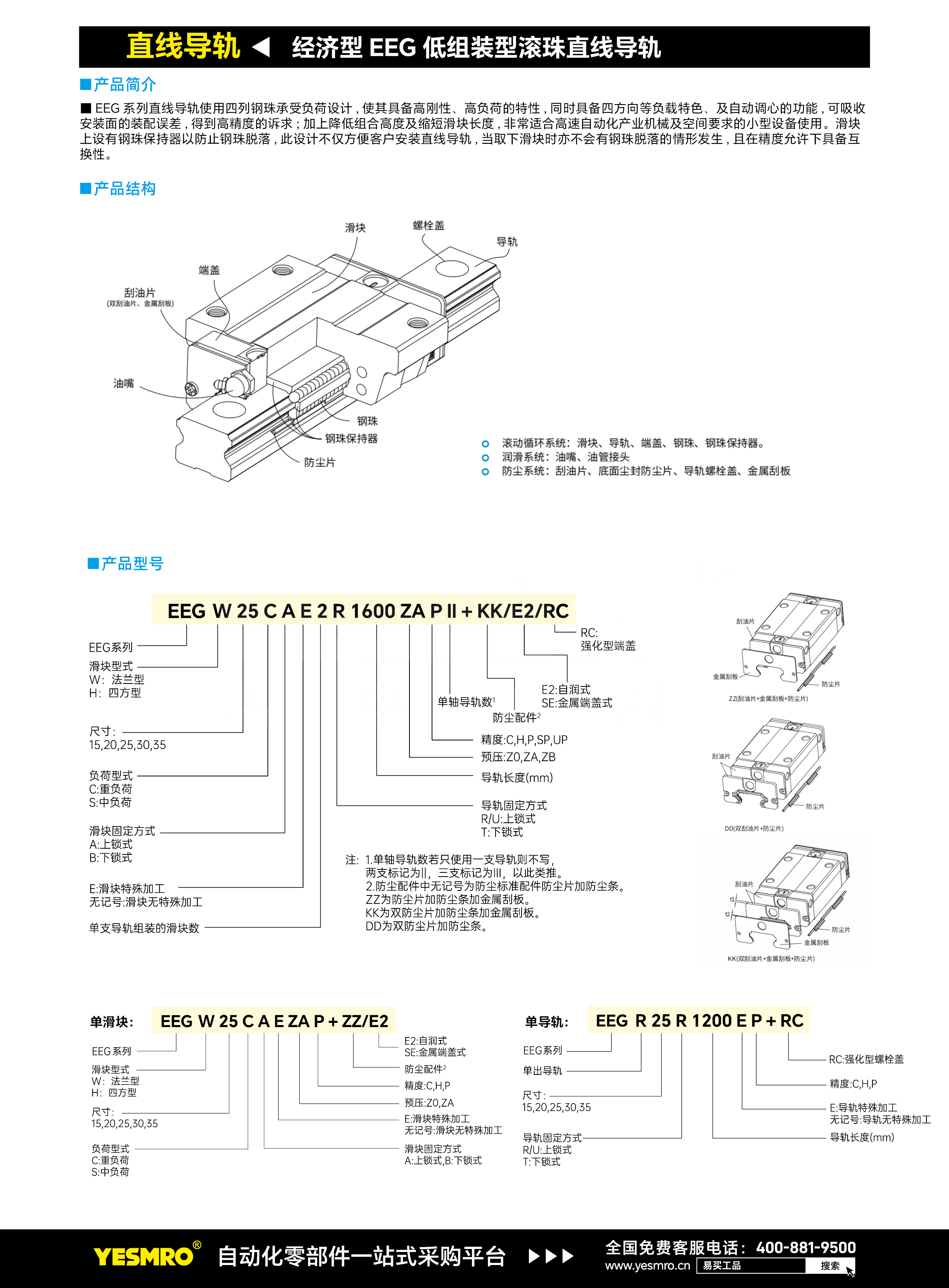 首页直线导轨EEG低组装型滚珠直线导轨-组件