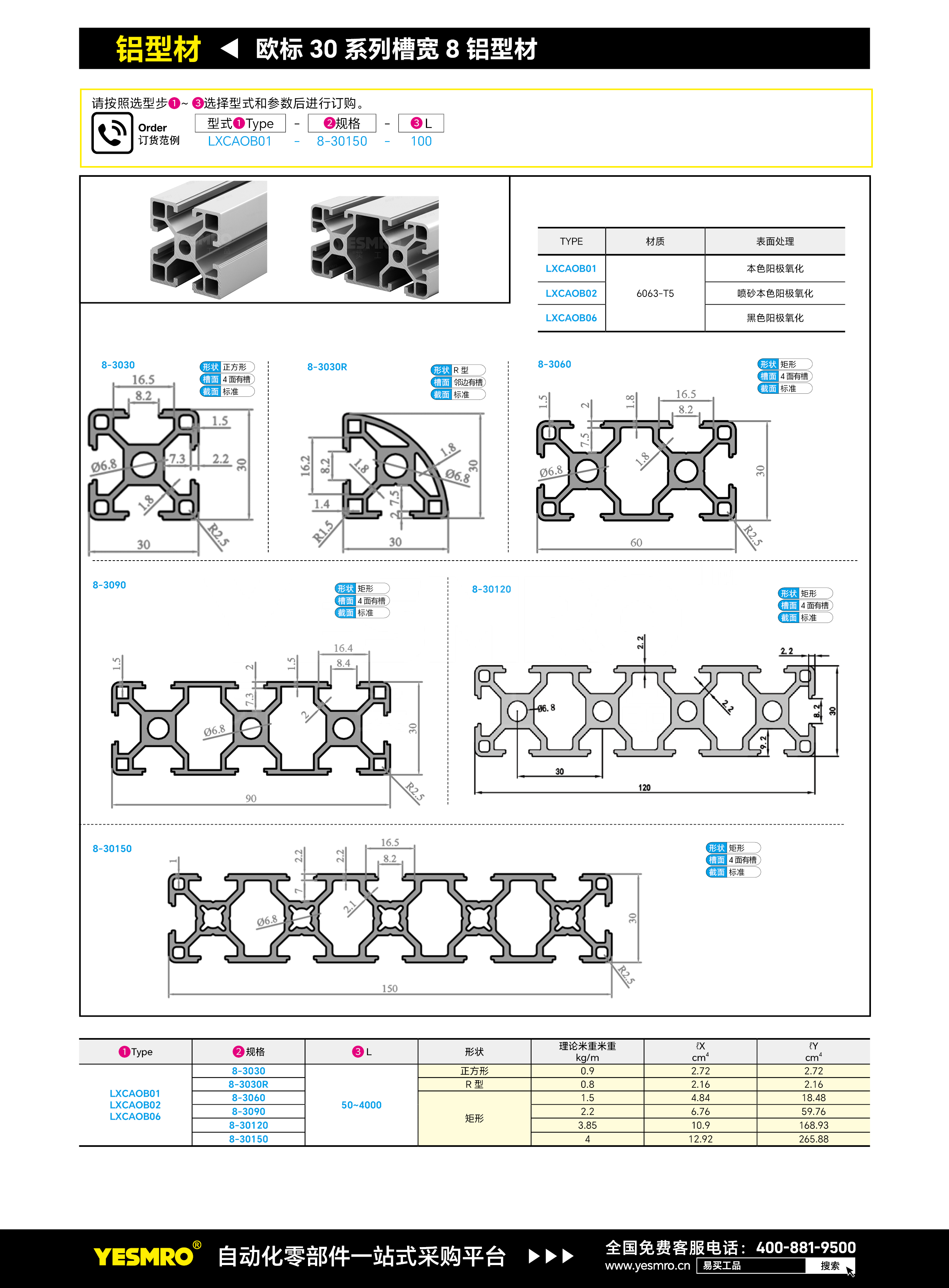 欧标30系列槽宽8铝型材