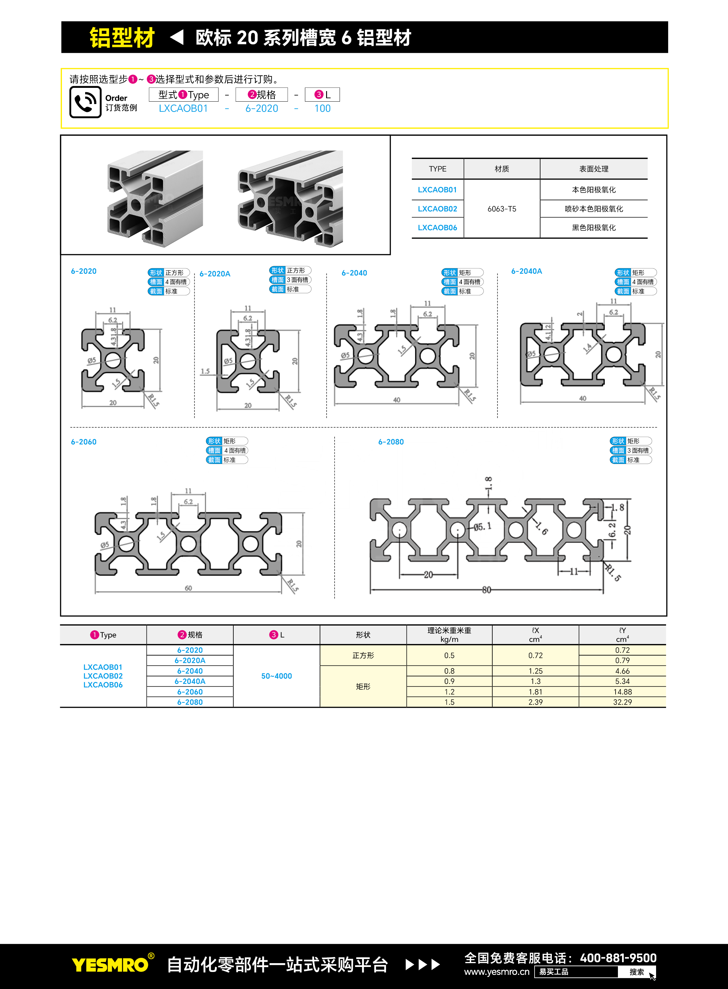 欧标20系列槽宽6铝型材