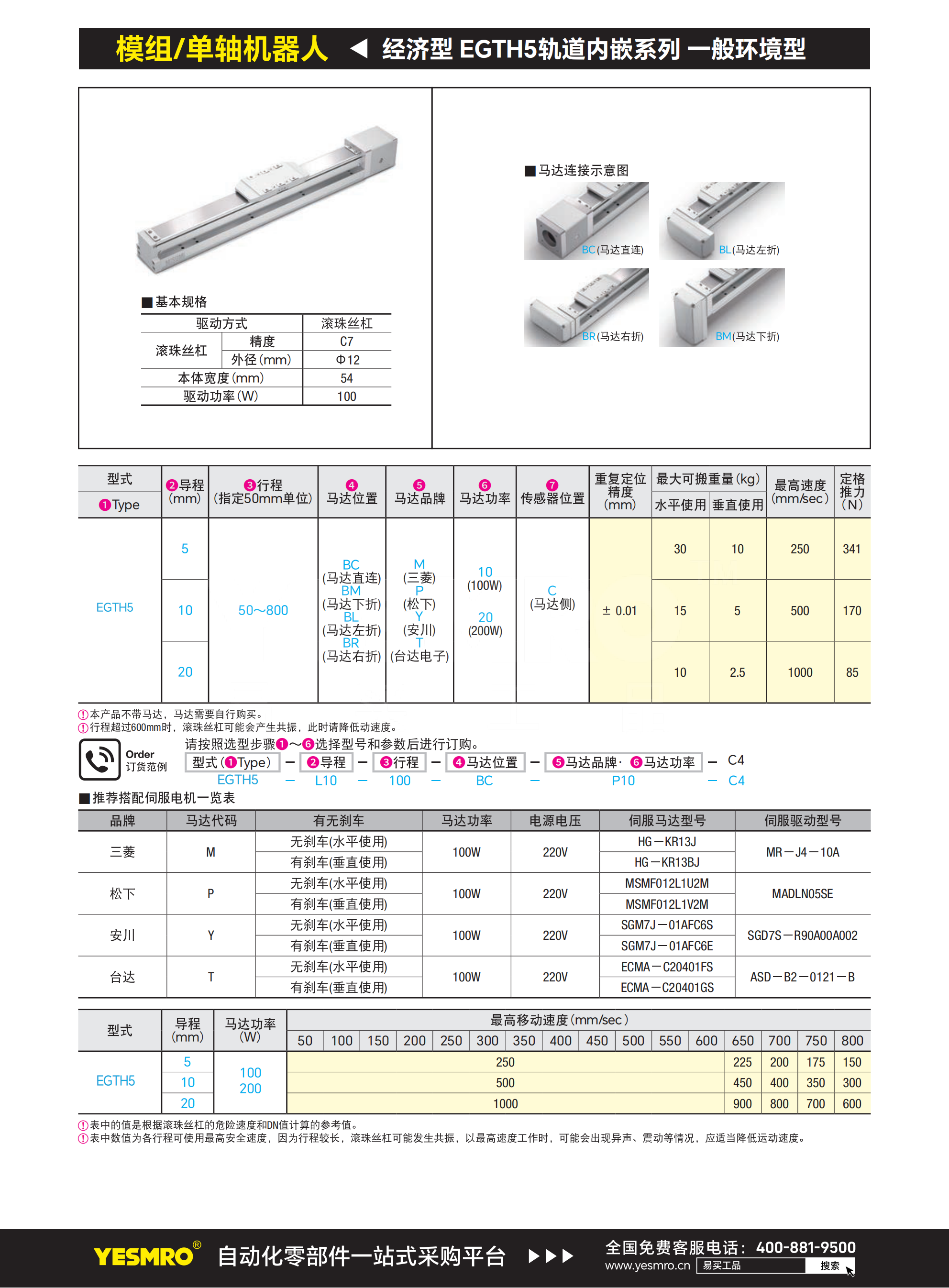 单轴机器人 EGTH5系列 轨道内嵌系列