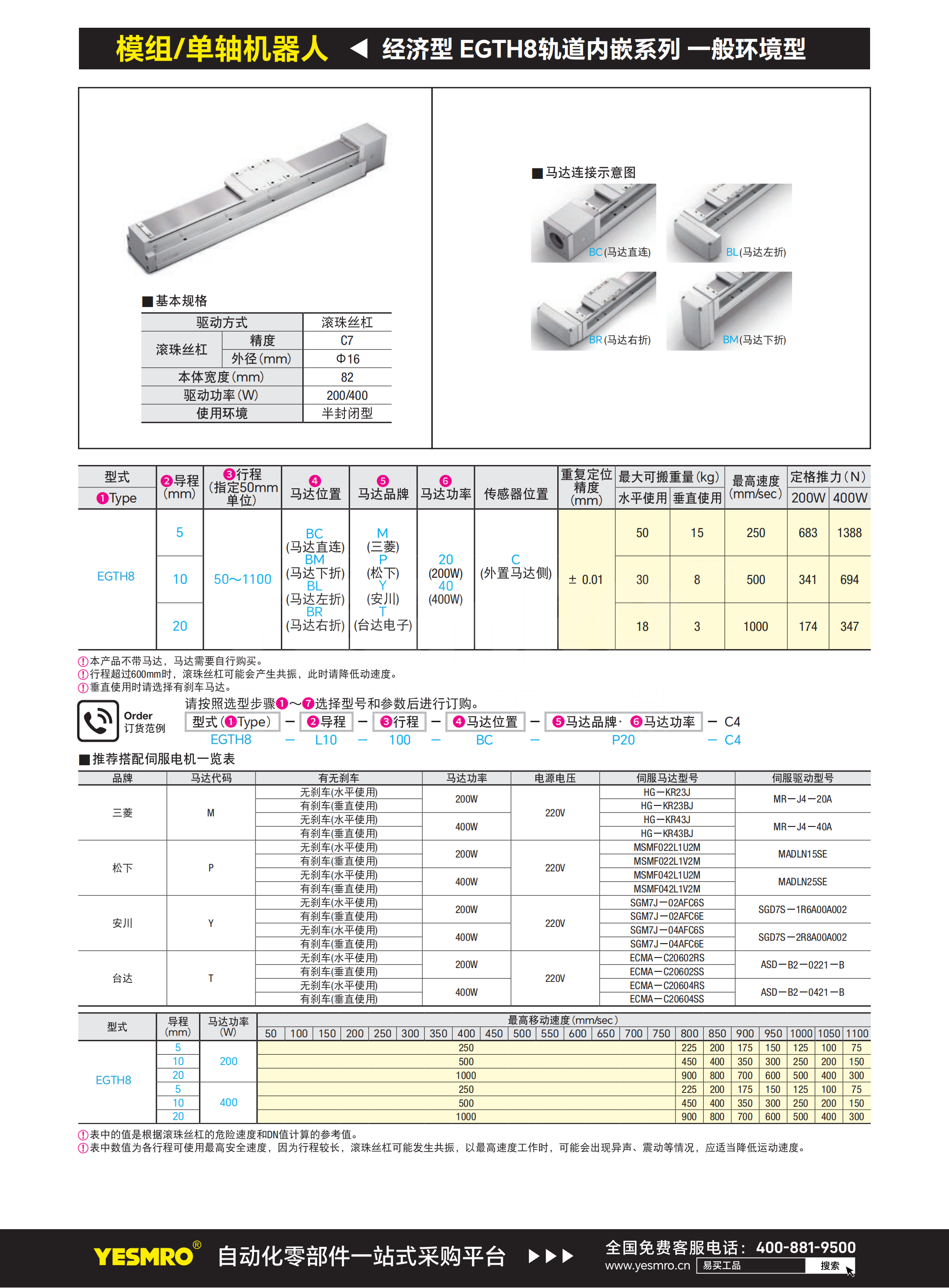 单轴机器人 EGTH8系列 轨道内嵌系列