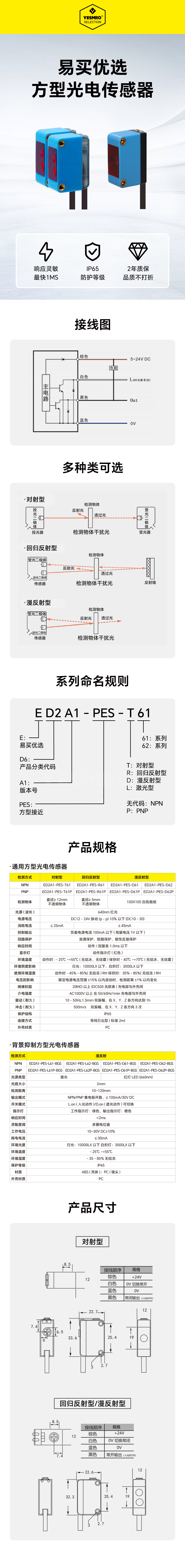 1. 响应灵敏,最快1ms 2. IP65防护等级,环境耐受性高 3. 2年质保,品质不打折